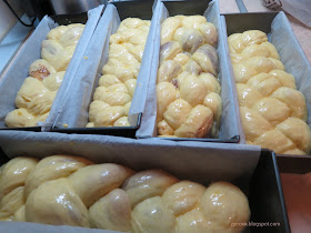 Βάζουμε λαδόκολλα στα ταψιά σε μακρόστενες φόρμες είναι καλύτερα, για να μη απλώσουν τα τσουρέκια για να φύγουν προς τα πάνω!